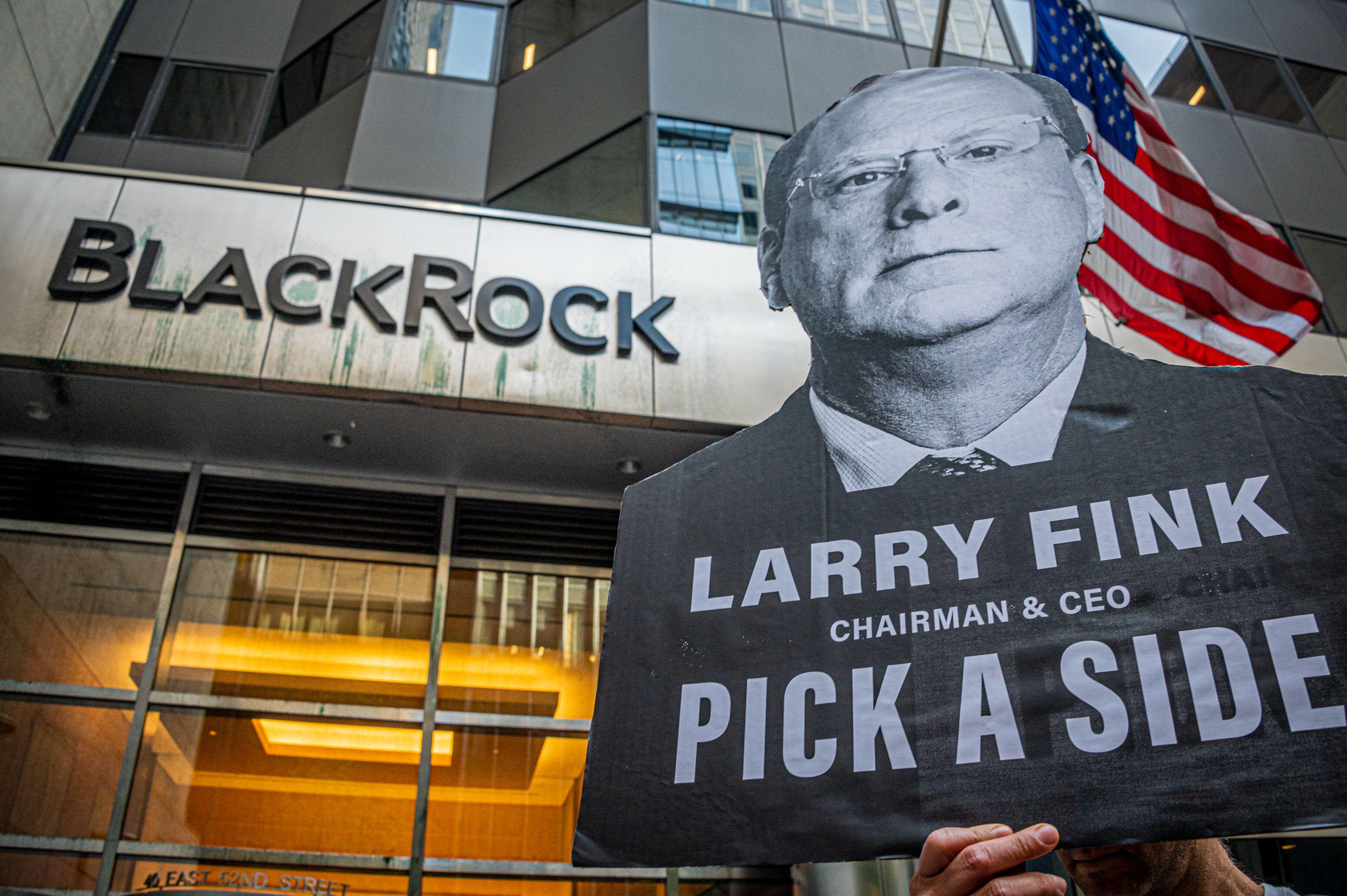 Climate protestors demonstrate outside BlackRock offices