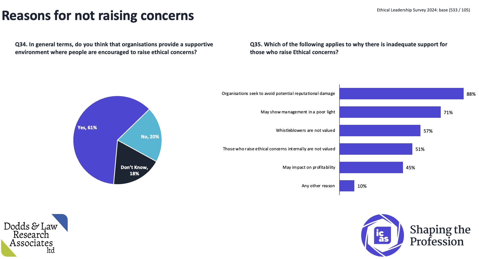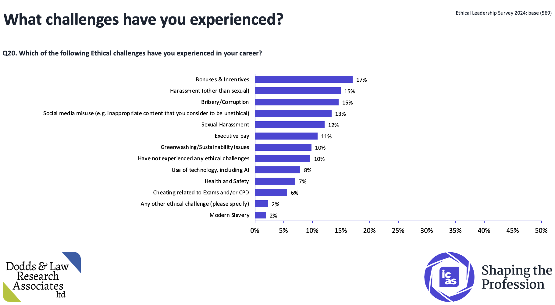 In 2020, ICAS joined forces with Protect to provide members and students with access to an independent and confidential helpline offering free advice for anyone considering whistleblowing. That followed the previous year’s survey of the ethical dilemmas that members face. Last year, ICAS published a new survey on ethical leadership as part of the Shaping the Profession programme (see results below).
