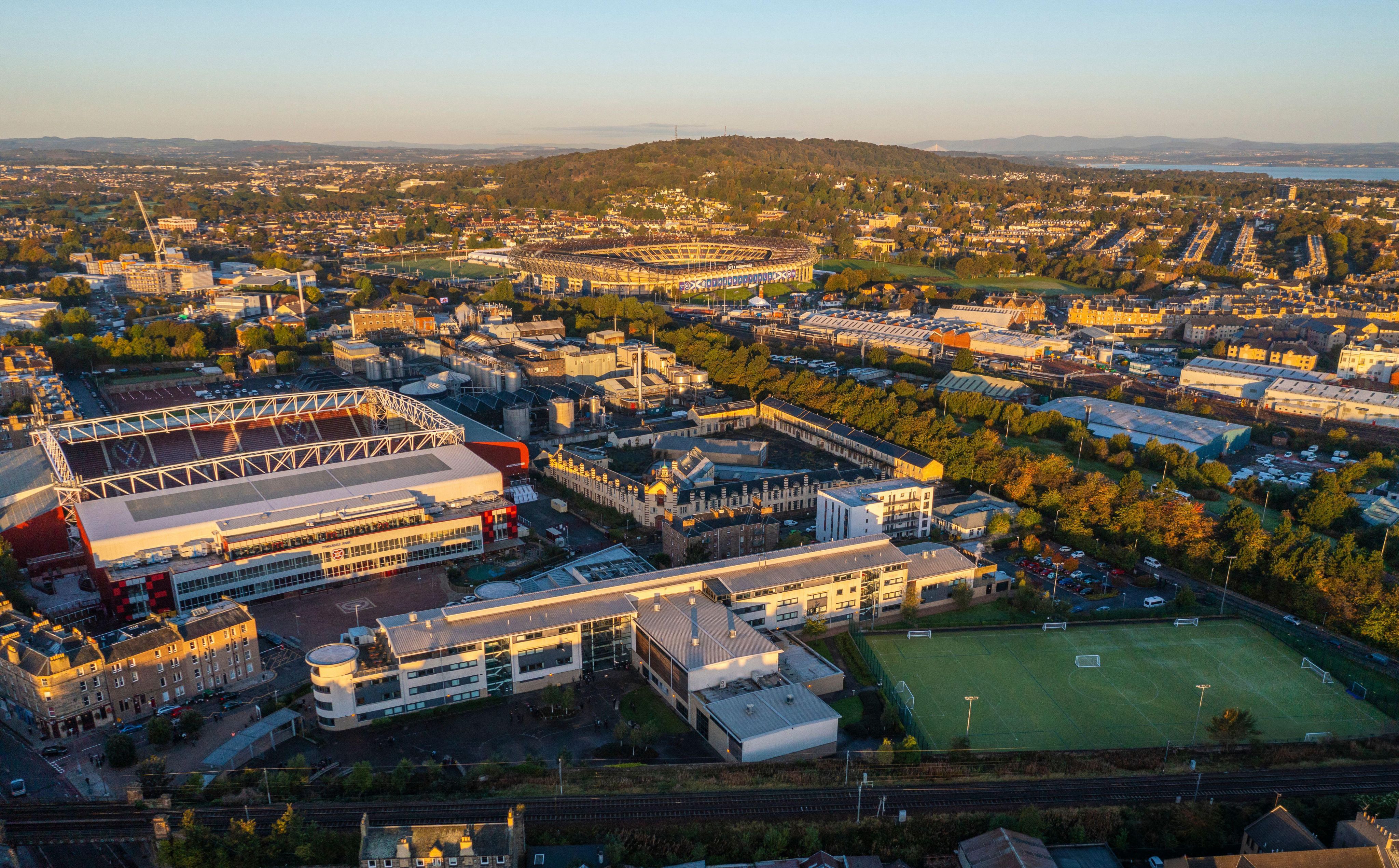 The Hearts ground Tynecastle Park (left)