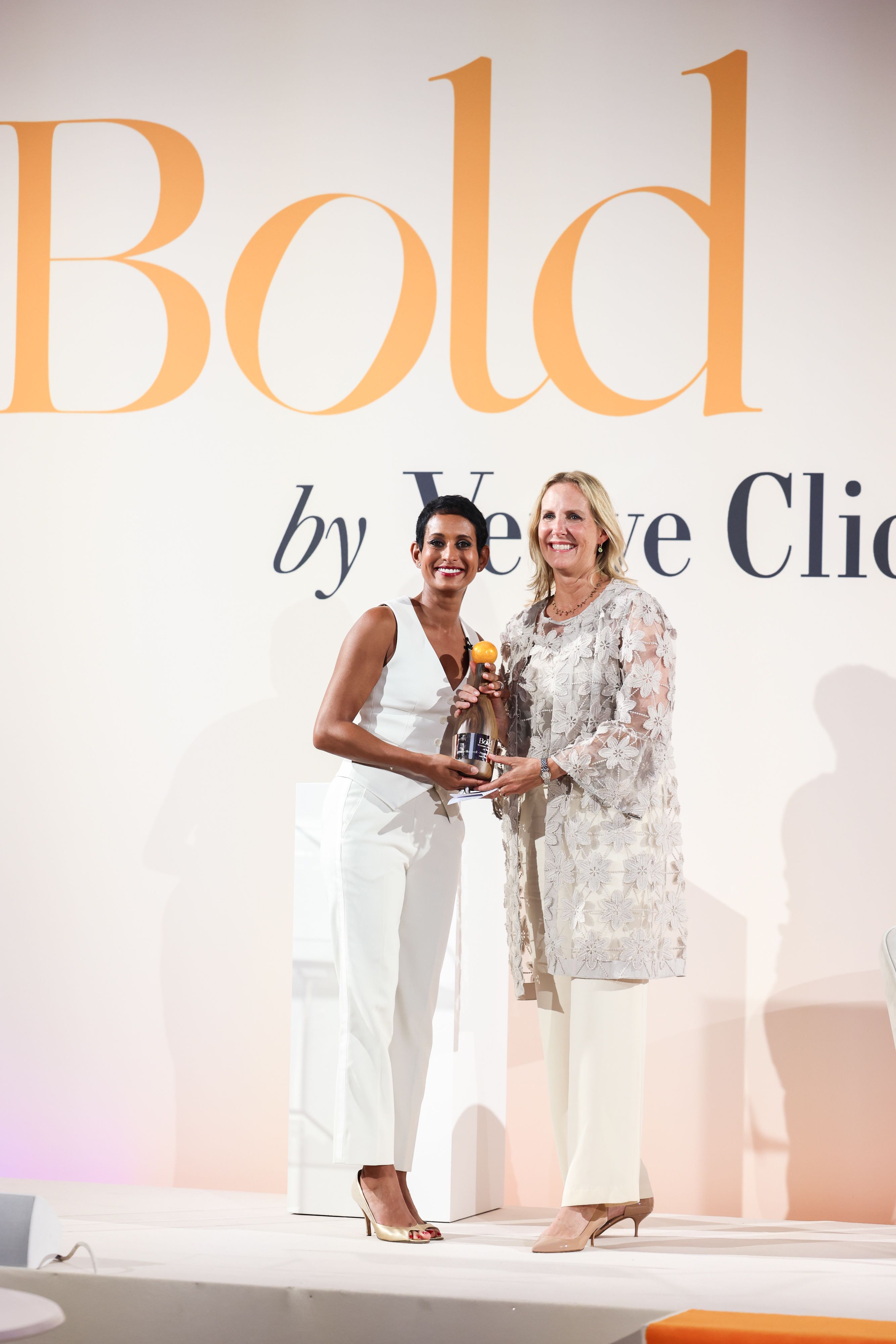 Receiving the 2024 Veuve Clicquot Bold Woman Award from newsreader Naga Munchetty
